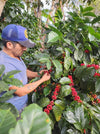 This is our second year working with Yermy Pedraza. La Joya Natural is produced by Yermy Pedraza, a third generation coffee producer, in the Nariño region in Colombia and this particular coffee is a blend of three different varietals, Bourbon, Pink Bourbon and Castillo. The expression of this coffee is sweet with notes of dark cherry and blackberries.